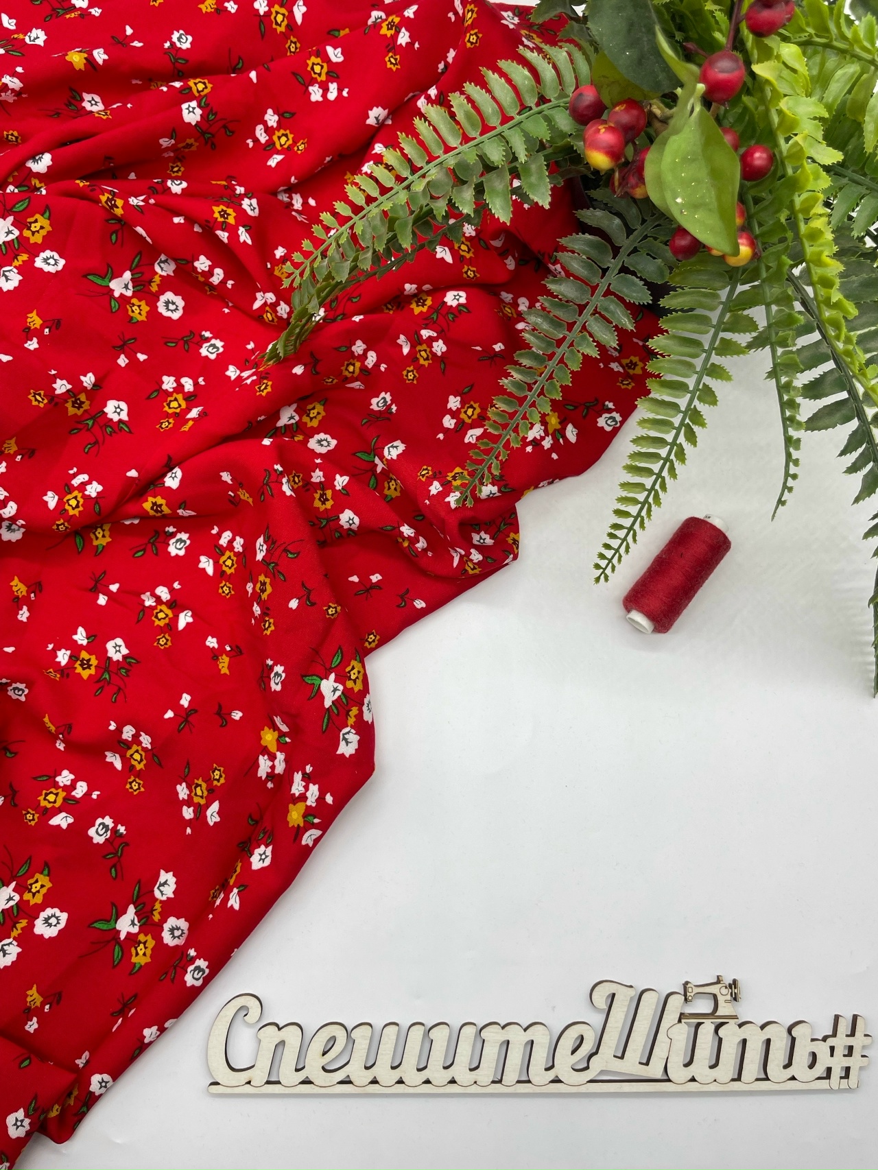 Штапель цветы на красном